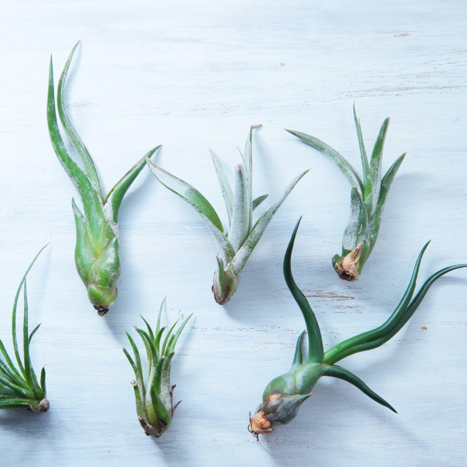 While these botanical beauties can’t thrive on air alone, they require absolutely no soil at all to grow and use their roots to anchor them in place. We couldn’t be happier to offer this mindful medley of five high-quality Tillandsia Air Plants, each unique in textures and styles. In every mix, we are sure to include several happy, healthy species ranging from 2″ to 8″ in length.