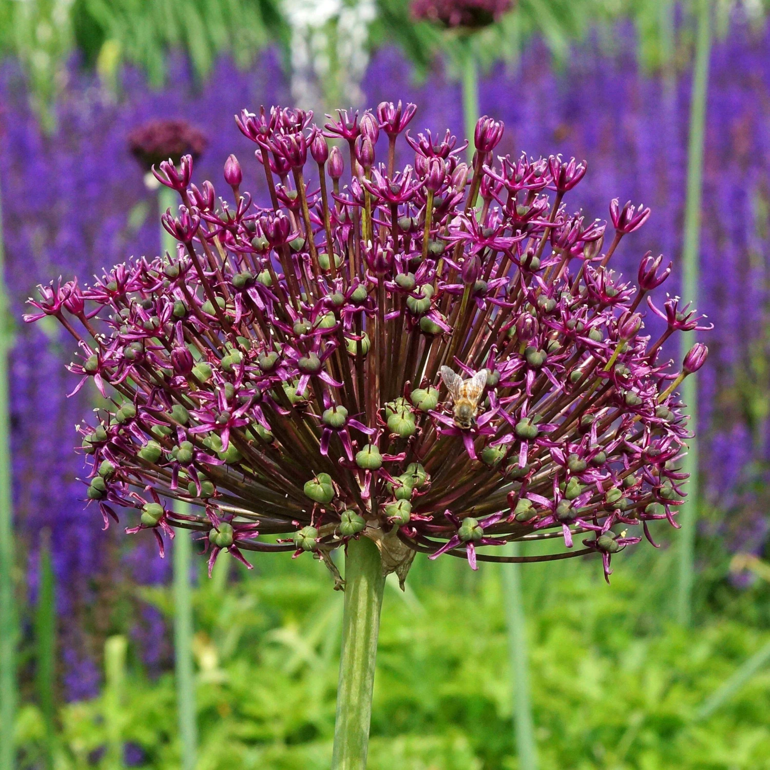 Allium Nigrum’s snowy blooms are beautifully accented by the deep dark wine-colored flowers of Allium Atropurpureum. Hardy in zones 4 to 8, plant these beauties in the fall for a breathtaking display starting in early summer. Enjoy!