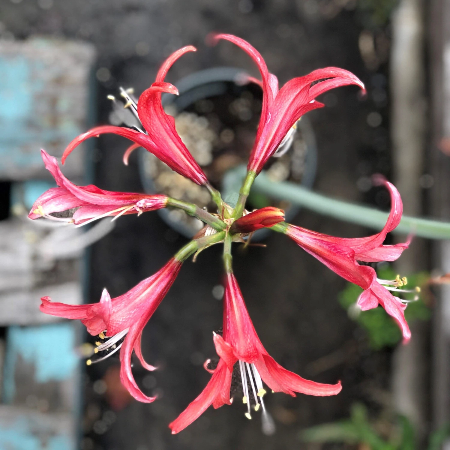 - Coral pink flowers with slender, recurved petals