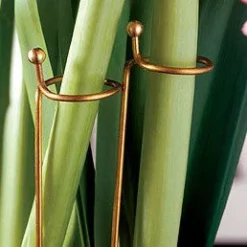 Sometimes amaryllis blooms grow so big they need support to avoid falling over. This is especially true for the full double flowering types and for the extra large flowers produced by big bulbs (like ours!) Avoid disappointment for yourself and for your giftees with these elegant copper-colored support stakes. The stakes are 15″ tall and come three per package. Just poke a stake into the soil and slip the top loop around the flower stalk. Voila!