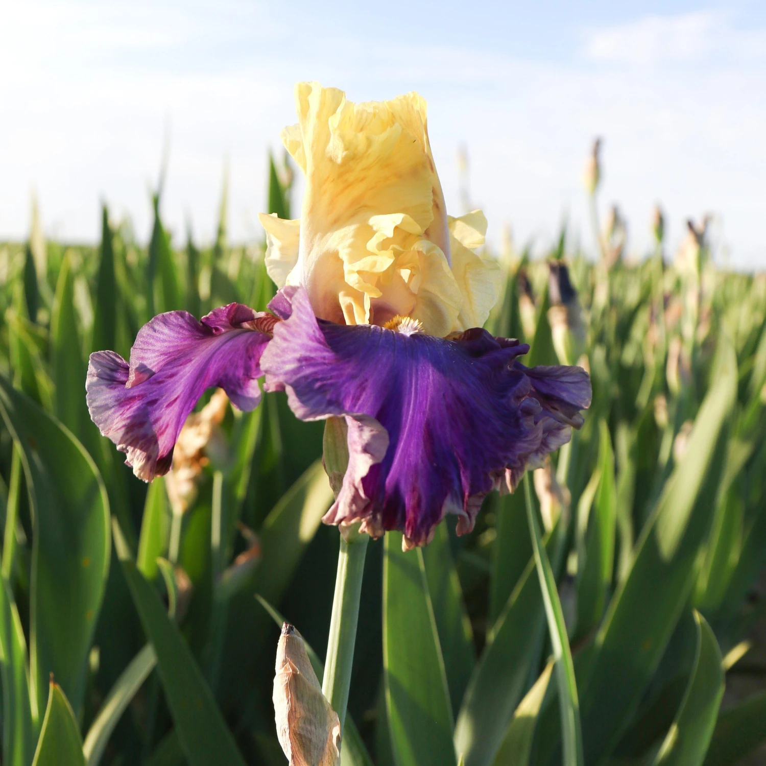 Yellow and Purple Reblooming Bearded Iris Jurassic