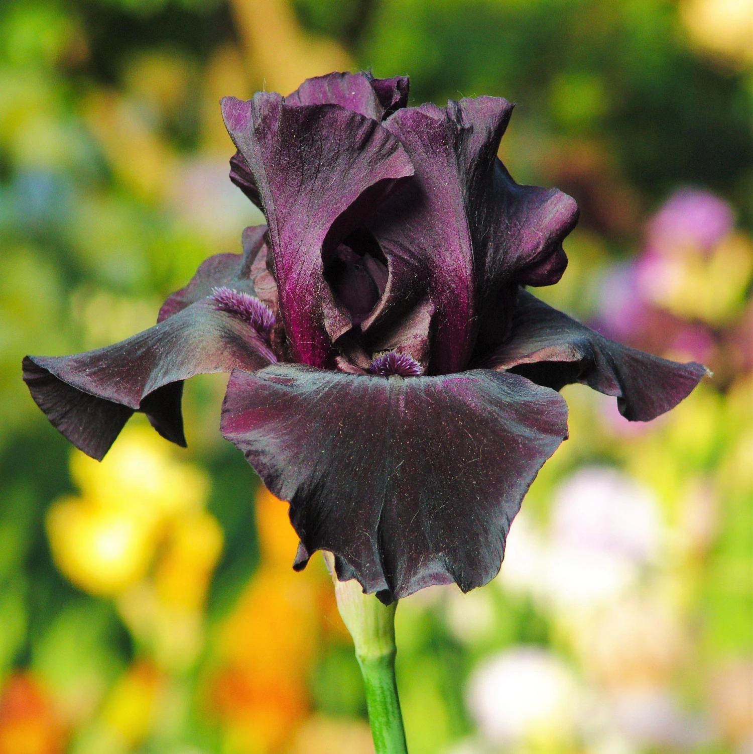 Superstition Iris will cause you to double take with its deep, dark purple color that nearly passes for black. With its beautifully ruffled display, Superstition flowers sit atop 32-36 inch tall stems that are covered with early spring blooms. Its rich, purple flowers are complemented by its sultry scent.
