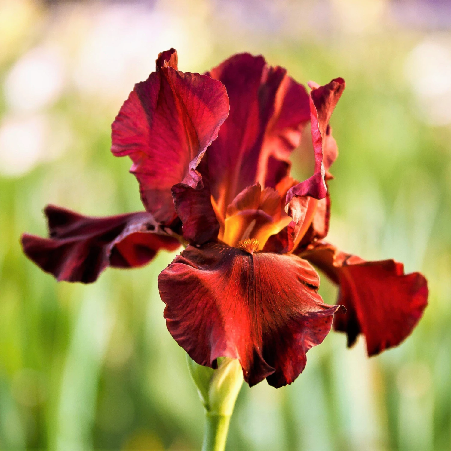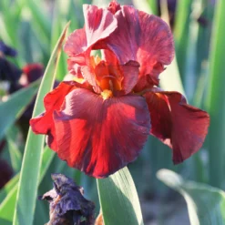 War Chief is a red reblooming bearded iris that absolutely glows in the sunlight. It’s rare to find a red colorfast Iris that won’t fade in full sun, but Iris War Chief meets the challenge head on, firing up every garden where it’s planted. During spring and fall War Chief’s deep burgundy petals with striking indigo veins and a bright yellow beard set your garden aflame!