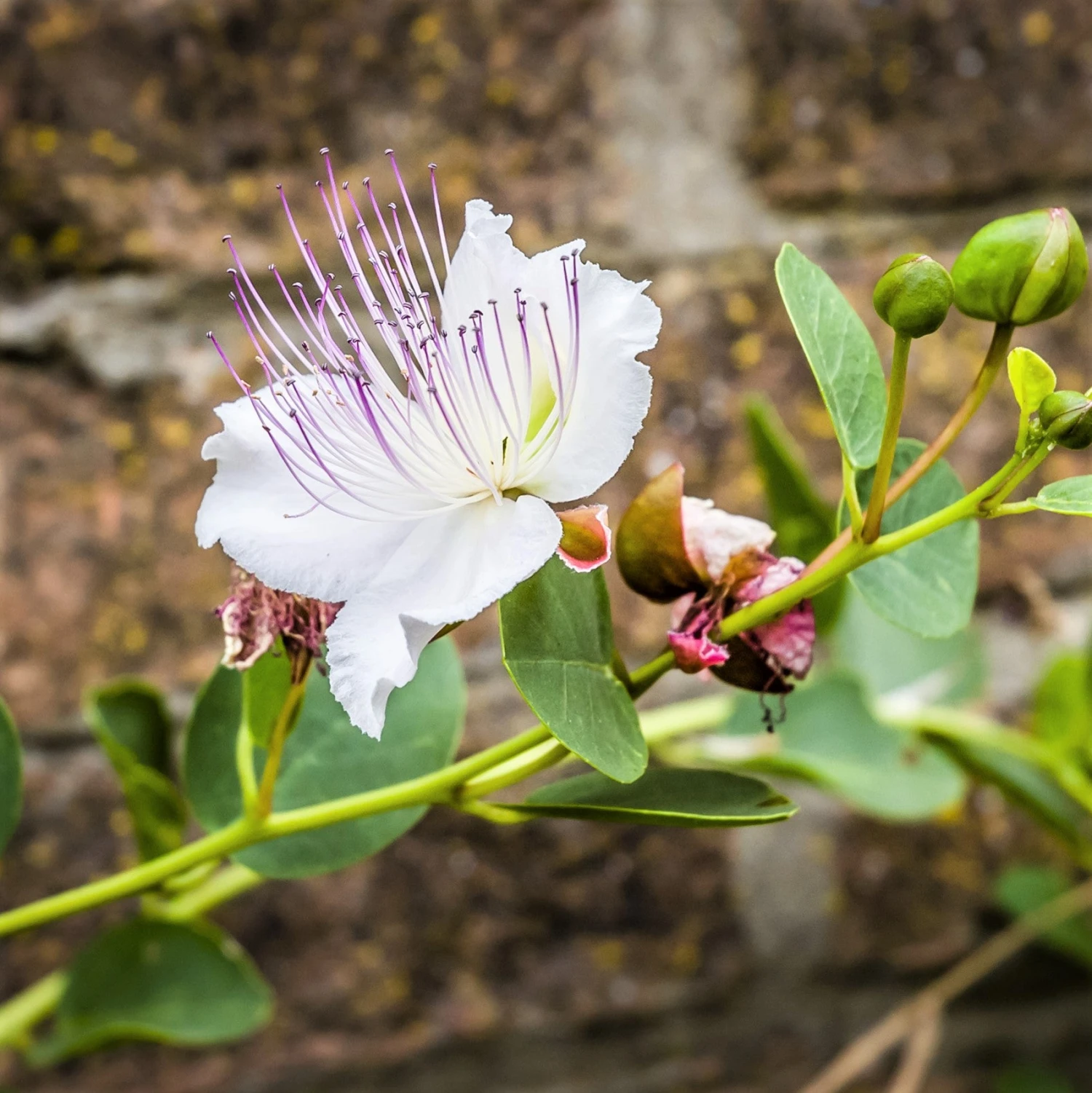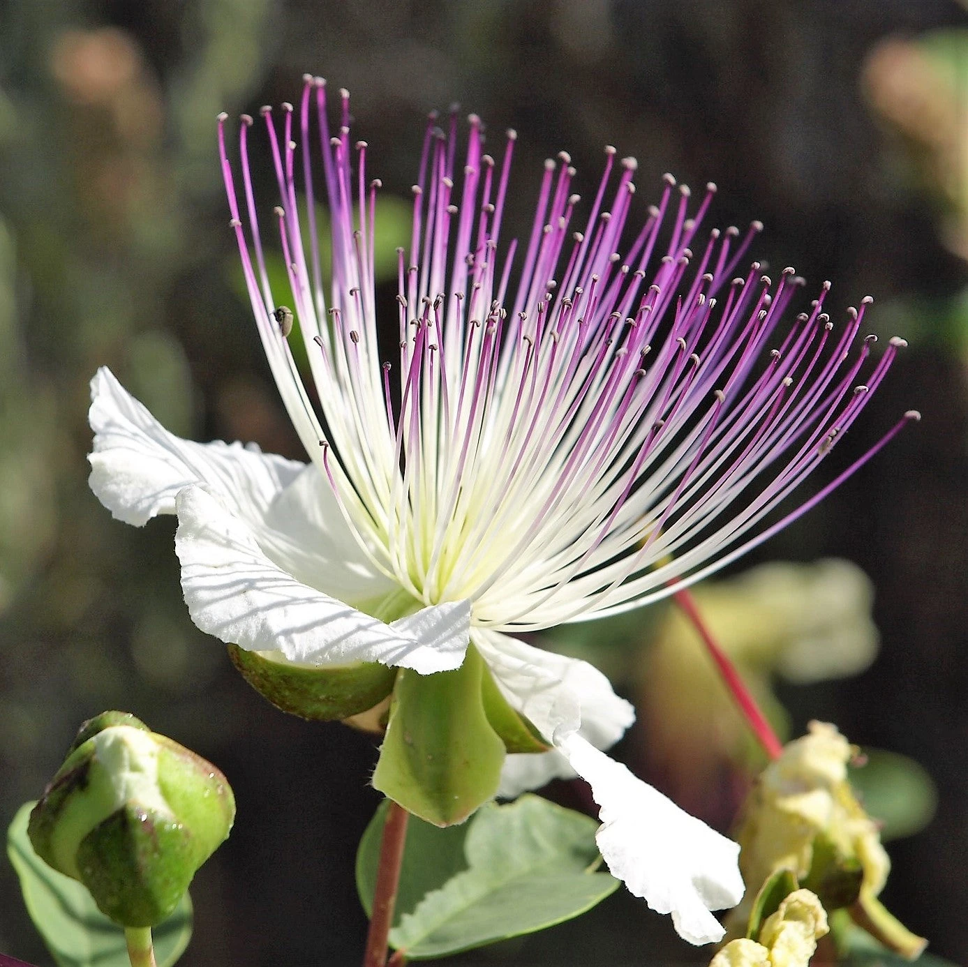 Caper shrubs make unusual and attractive ornamentals that flower in their second or third year and will live for decades, steadily producing more buds and berries. These plants thrive in hot, dry environments and prefer full sun. Extremely drought tolerant, caper bushes are found throughout Greece and Italy growing out of the sides of ancient buildings!