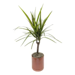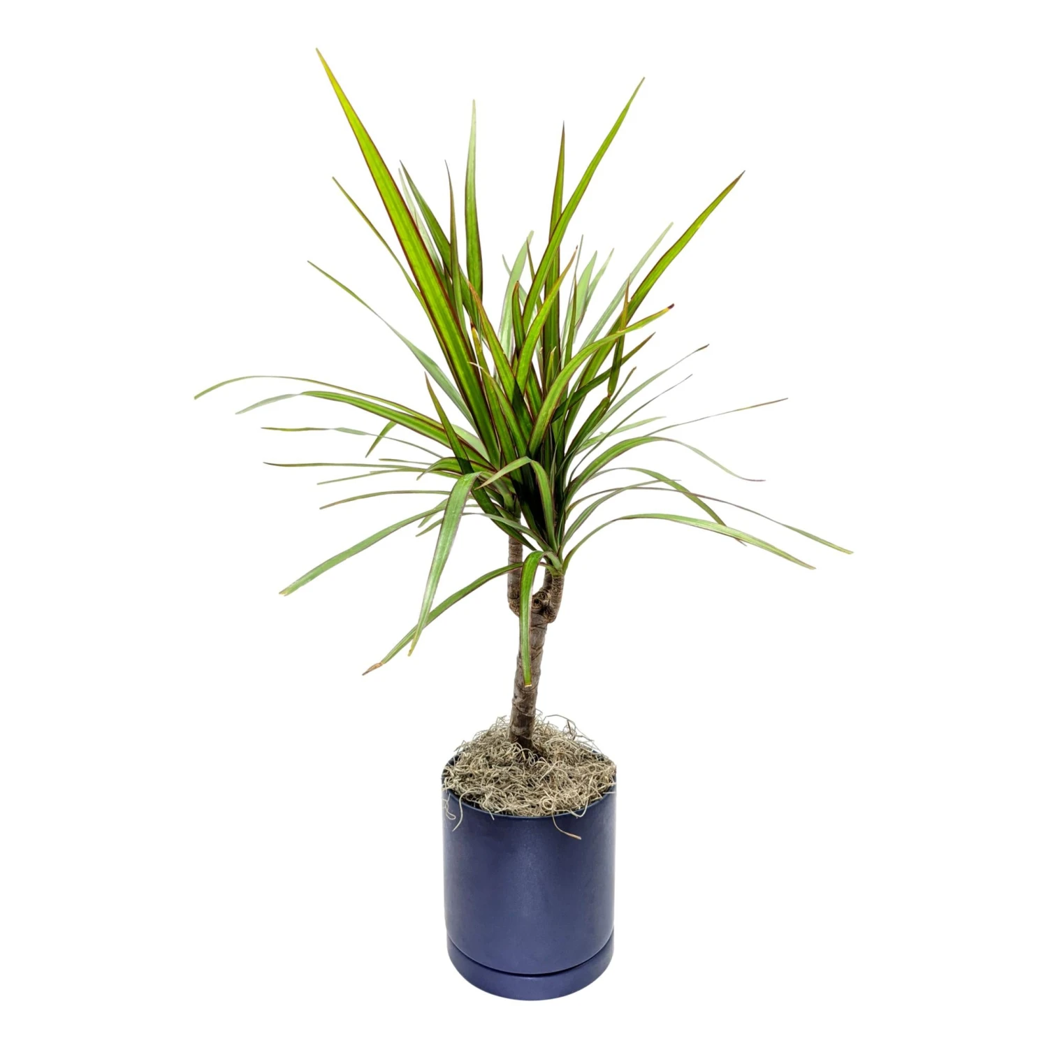 Looking for a modern or architectural houseplant? Dracaena definitely checks that box! Available in a variety of stoneware pots, this Dracaena is a super easy-care plant with an upright, spiky growth and narrow green (or colorful striped) leaves, usually on a single slim trunk. It starts out small, ideal for your desktop, and grows into a statuesque floor plant over time. Are you new to plant parenting? You will absolutely love Dracaena.