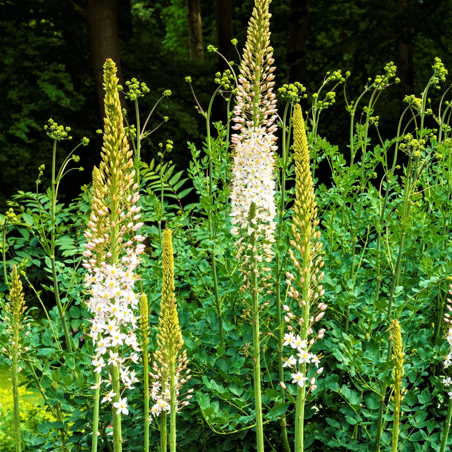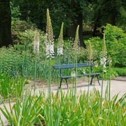 With the tallest and most spectacular flower spikes of all Foxtail Lily varieties, Eremurus Robustus is bound to impress! These stunning statement plants flaunt gigantic spires bursting from wide, multi-stalk clumps, each bearing up to 800 pale pink tiny flowers with contrasting orange stamens.