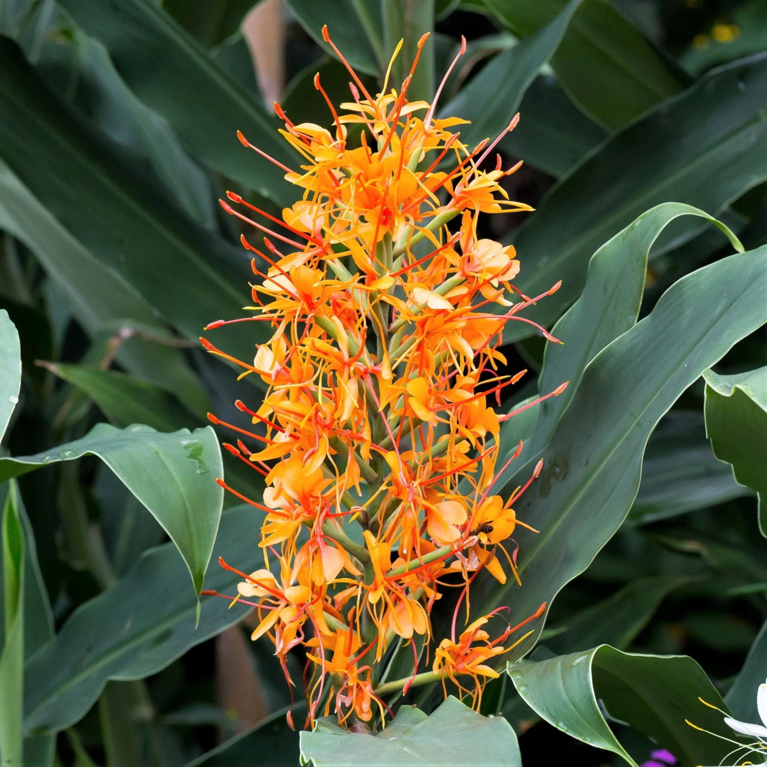 With spectacularly ornate flowers, it’s hard to believe this beauty is among the most hardy varieties, with a range that extends all the way into zone 7. Fragrant Aurantiacum, also known as Orange Ginger and Orange Bottlebrush Ginger, produces fragrant, bright orange blooms and dark green foliage with red-streaked stems. While the fluffy, brush-like blossoms grow between 6 and 12″ long from mid to late summer, the foliage can reach up to 6′ tall! Orange Ginger forms impressive clumps over time, and for gardeners in cooler climates, this is an incredible option. Enjoy!
