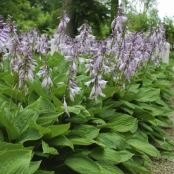 Sieboldiana Elegans thrives in partial to full shade and is among the longer-lasting varieties of hosta plants. In early summer, this stunning plant produces trumpet-shaped blooms in all white with a whisper of lavender. The hummingbirds have trouble resisting their allure, and so will you!