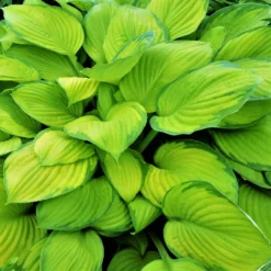 Elegant enough to be a lustrous work of art yet tough enough to withstand the Summer sun, Hosta Stained Glass truly offers the best of both worlds. This exceptional Hosta variety exhibits fade-resistant foliage with vibrant, golden leaves. Deep cut veins and dark green margins give her huge, 10.5-inch broad leaves the illusion of sunlight streaming through striking stained glass.