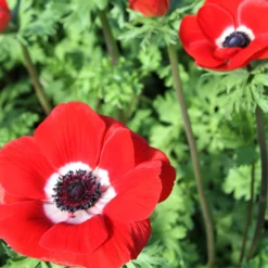 Ravishing red blooms with distinct markings make Italian Anemone Mistral Plus Rosso a prized choice for spring displays. This variety produces prolific blossoms with generous crimson petals, black button centers, and contrasting white rings – Truly bellissimo!