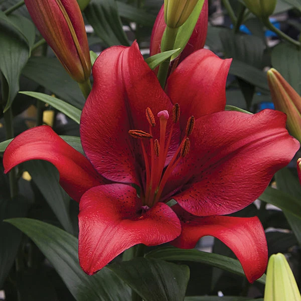 In Italian, the word “Forza” means “with force, strength, or power,” and once you lay eyes on this Longiflorum red Asiatic lily, you’ll understand why it got this notable name! Impressive, deep red flowers with red anthers, stamens, and a mild fragrance make this spectacular plant simply stunning.