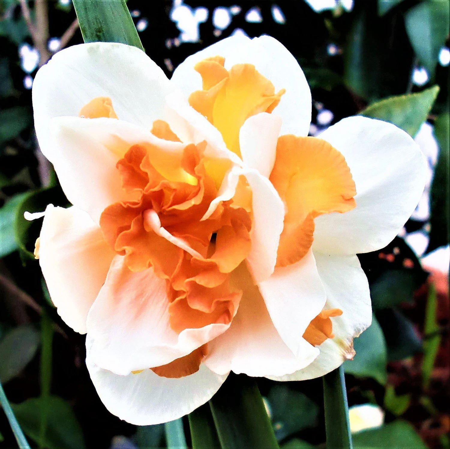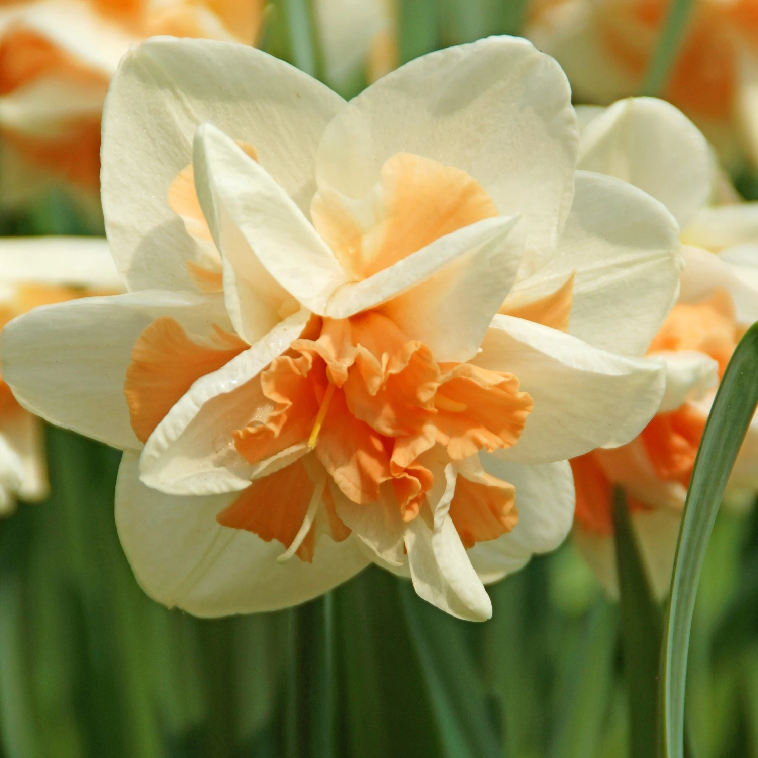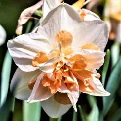 Alright, we’ll be the first to admit that double Daffodils are some of our absolute favorite spring bloomers. Now don’t get us wrong – we still love the classic single trumpet types, but these luscious beauties are like an extra dose of cheer. Narcissus Replete is a prime example of this flower form, boasting two rows of white petals surrounding a ruffled cup that showcases warm apricot and salmon hues. Growing up to 18″ tall, these carefree charmers look sensational when planted in generous groupings or contrasted with single varieties in the same color family. Oh, and we can’t forget to mention they’re unbothered by deer and rodents!