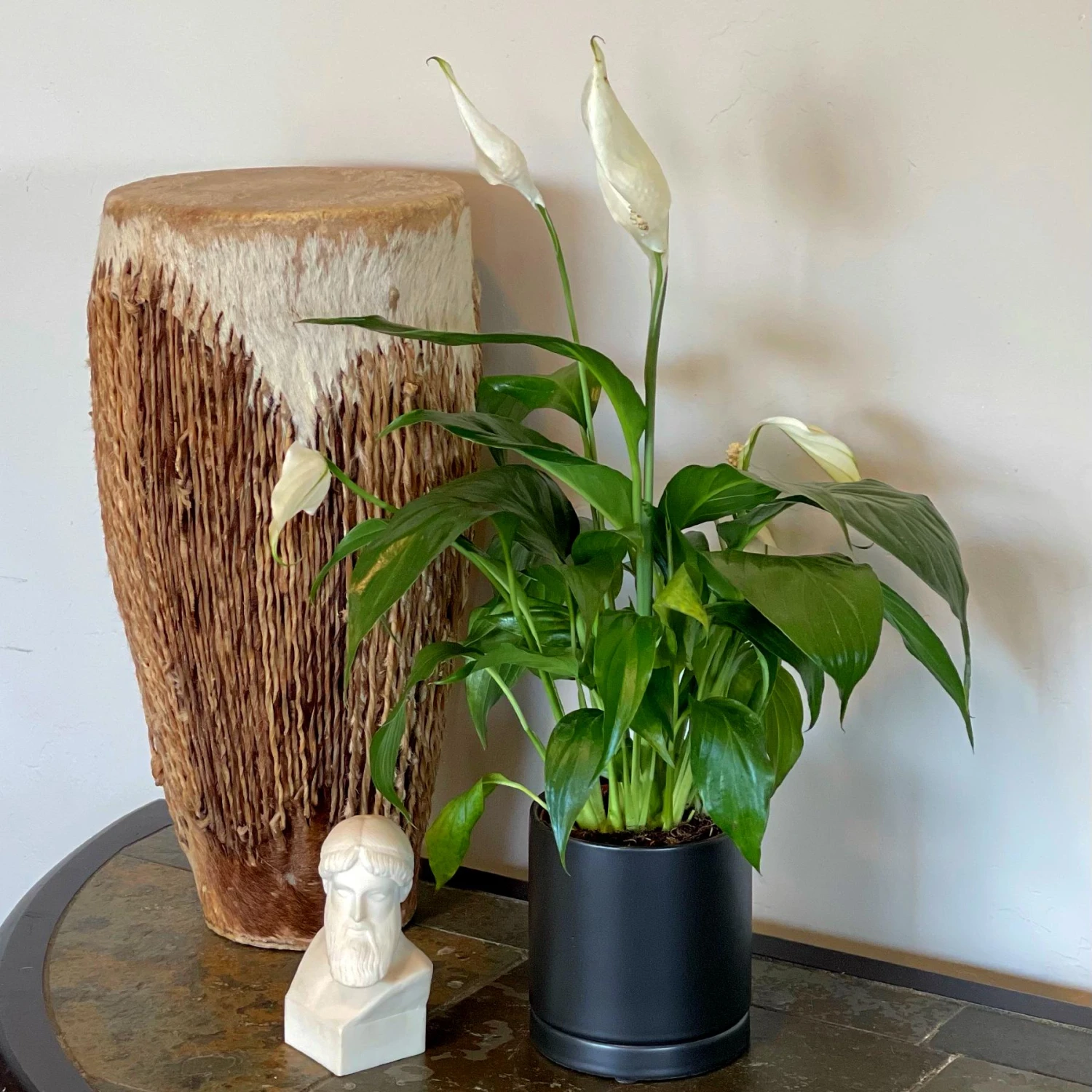 Why is the Spathiphyllum Peace Lily among our all-time favorite houseplants? Well, it could be its stunning white flowers, glossy green foliage, low-maintenance nature, or air purifying qualities. Growing up to 4′ tall, these beauties thrive in medium to bright indirect light with consistent moisture.